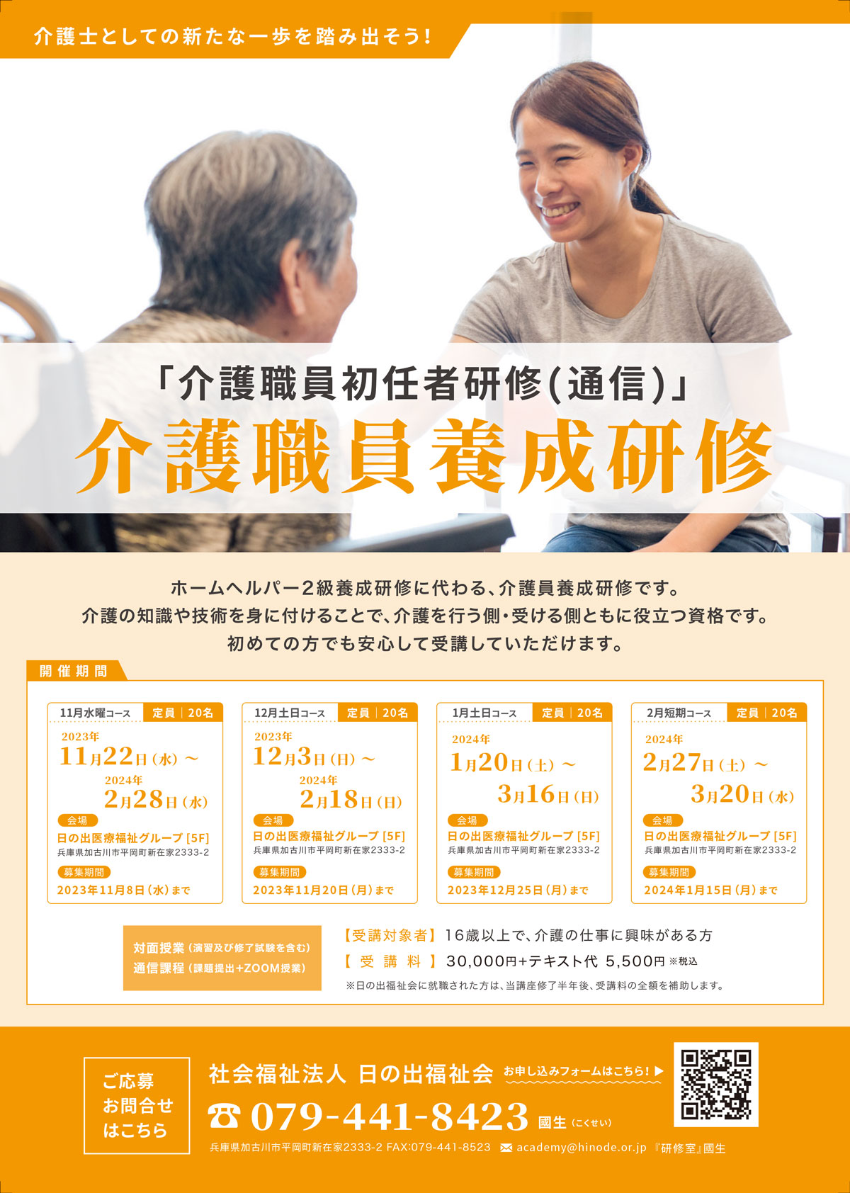 11月以降に開講する介護職員初任研修受講生を募集しています。 詳細は申し込みページおよび以下をご確認ください。