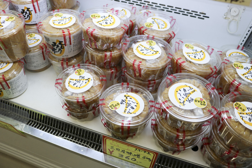 「三日月みそ」は全国にファンがいて、年間40トンも出荷される佐用エリアの名物となっています!佐用エリアの物産が揃う「味わいの里 三日月」では、500g~5kgの味噌が売られています。原料は厳選された地元特産のもち大豆とヒノヒカリ。塩気と甘さのバランスがいいまろやかな味です(´∀`*)