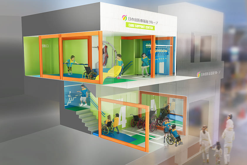 後期高齢者の急増に伴い、介護人材の需要が今後ますます高まる中、「2025年問題」(※1)に備え、政府は介護職の担い手確保・育成に向けた取り組みを進めています。日の出医療福祉グループとKCJ GROUPは、『ケアサポートセンター』パビリオンでの「介護福祉士」の体験を通して、こども達に相手の気持ちに寄り添い思いやる気持ちを育んでもらうとともに、「介護=明るい」という気づきを得ることで、「介護」について興味関心を持つきっかけにしてもらいたいと考えています。