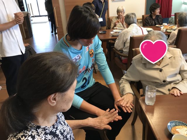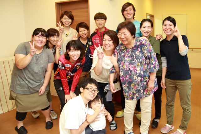 施設に初めて来ても、あっという間に利用者さまと馴染む選手たち。